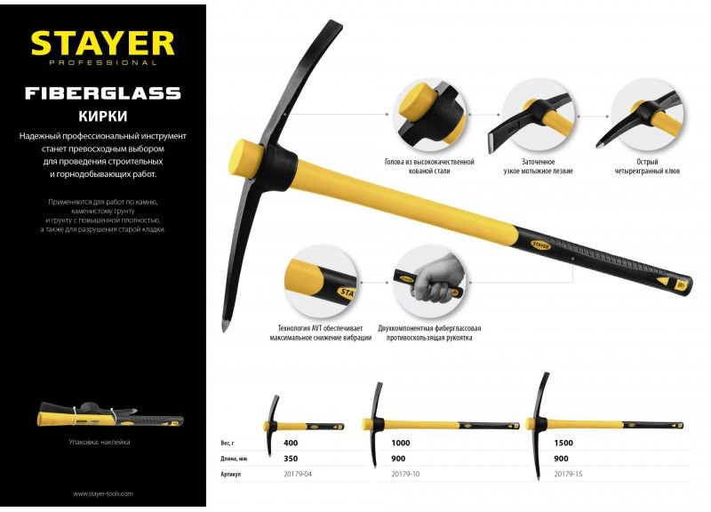 Кирка с фиберглассовой рукояткой STAYER Professional 1500г [20179-15]