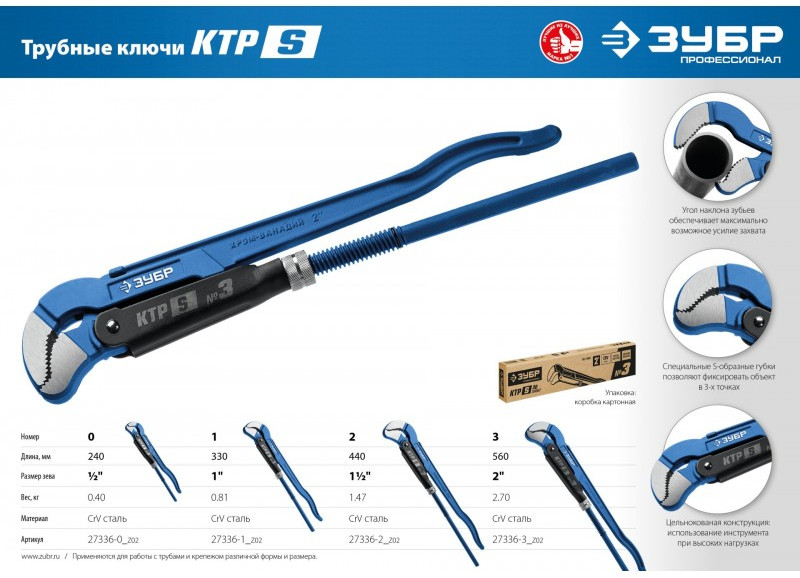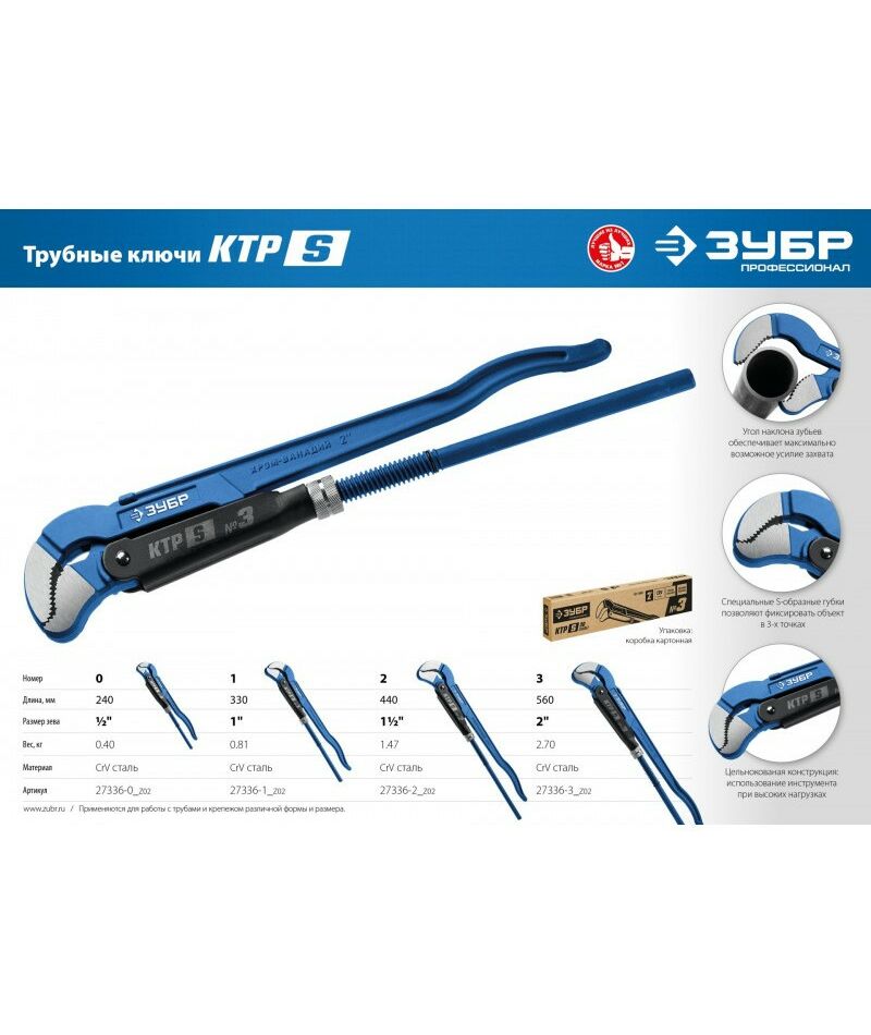 Ключ трубный Зубр КТР-S №3 изогнутые губки [27336-3_z02]