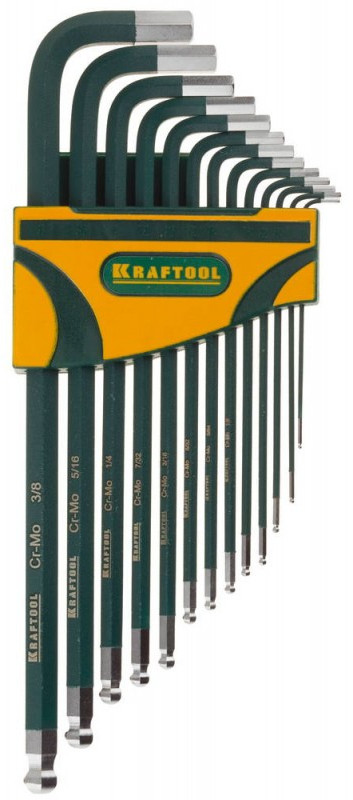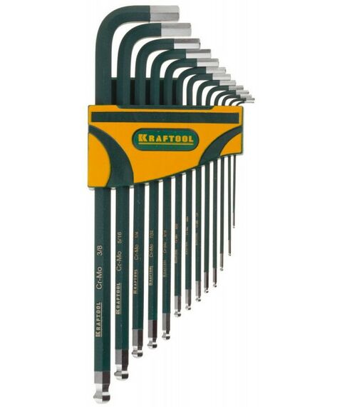 Набор ключей имбусовых KRAFTOOL INDUSTRIE длинные, дюймовые, Cr-Mo сталь(S2), Cr покрытие с противоскользящем напылении, SAE HEX0.05-3/8, 13шт [27444-H13]