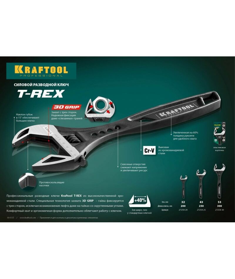 Силовой разводной ключ KRAFTOOL T-REX, 200 / 32 мм [27254-20]