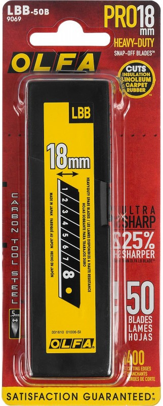 Лезвие OLFA EXCEL BLACK OL-LBB-50B сегментированное, 8 сегментов, 18х100х0.5мм, 50шт