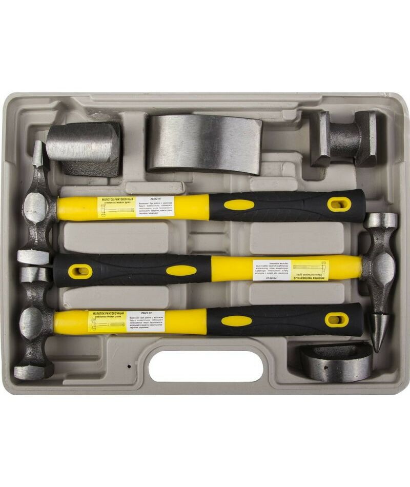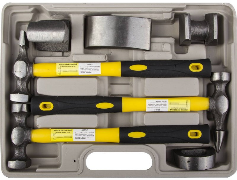 - Набор включает в себя большинство инструментов, необходимых для точной правки листового металла