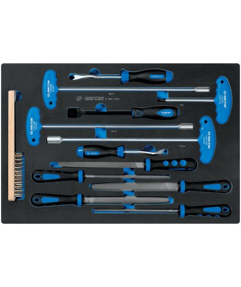 Набор напильников, ключей торцевых Т-типа, съемники клипс и металлическая щетка King Tony 9-90413TQV ложемент, 13 предметов