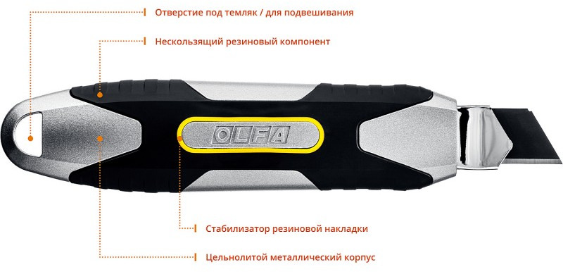 Нож из литого алюминия OLFA MXP-L для точного и уверенного реза. Корпус из нержавеющей стали надежно фиксирует лезвие, обеспечивая исключительную долговечность даже при непрерывном использовании. Ультра-острое черное сегментированное лезвие LBB шириной 18 мм на 25% острее стандартных лезвий OLFA, что делает этот универсальный нож выбором профессионалов.