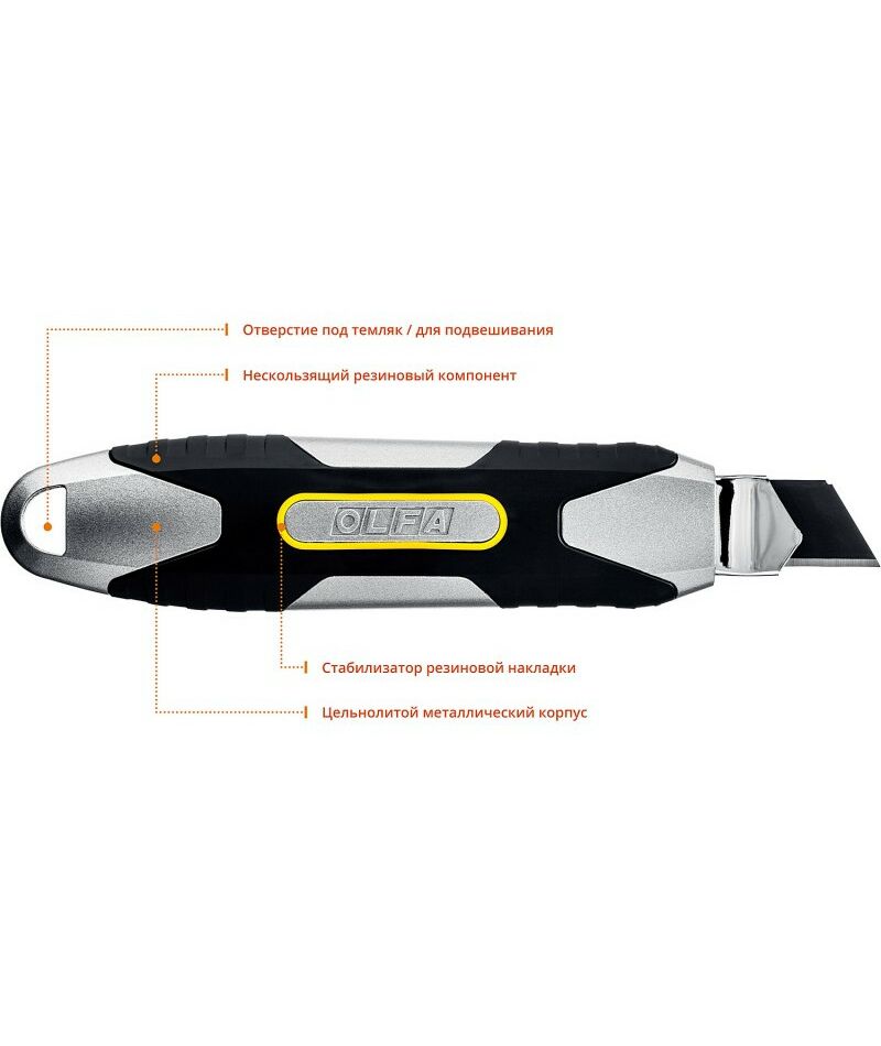 Нож OLFA OL-MXP-L X-design цельная алюминиевая рукоятка, винтовой фиксатор, 18 мм