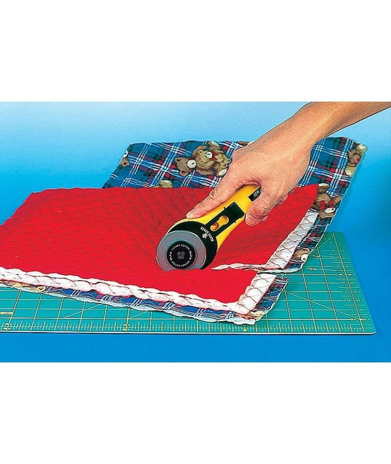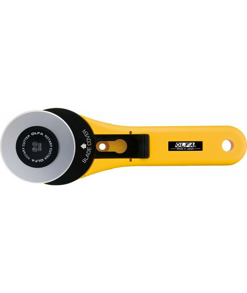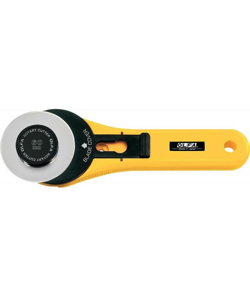 Поставляется с лезвием OLFA RB60, обеспечивающим вдвое больший объем резки по сравнению со стандартным лезвием. Большой диаметр, 60 мм, разрезает до двенадцати слоев хлопчатобумажной ткани за один проход