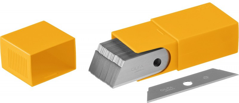 Используются в качестве сменных рабочих элементов в ножах OLFA SK-4, UTC-1. Применяются для разрезания коробок из гофрокартона, картона, резины, кожи, бумаги, упаковочной пленки.