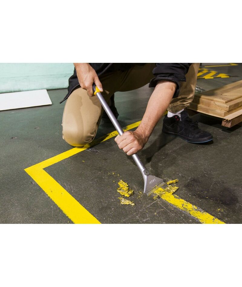 Скребок OLFA - повышенная безопасность, удобство в использовании и выделяющийся внешний вид. Прорезиненная металлическая рукоять, состоящая из мягкой черной части и более жесткой желтой, обеспечивает удобный хват и предотвращает выскальзывание скребка из рук.