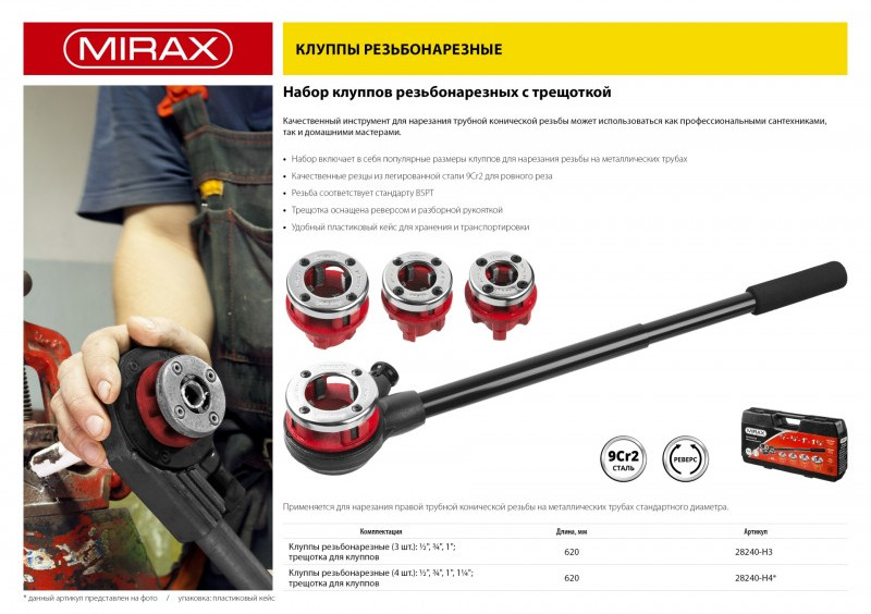 - Качественный инструмент для нарезания трубной конической резьбы, может использоваться как профессиональными сантехниками, так и домашними мастерами