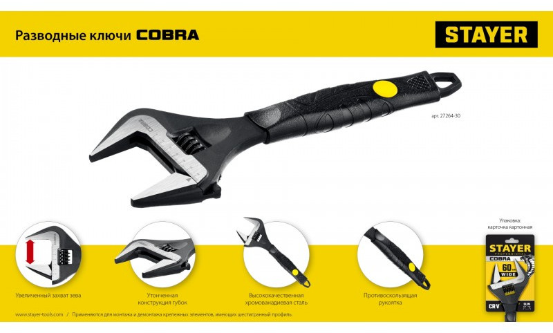 Разводной ключ STAYER Cobra 300 / 60 мм [27264-30]