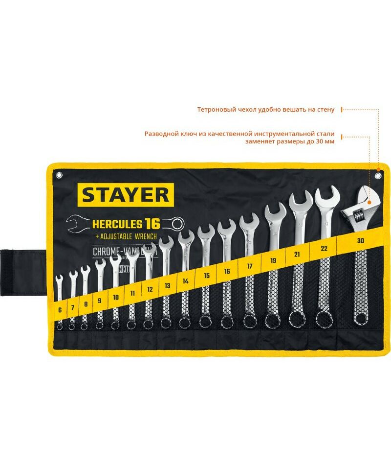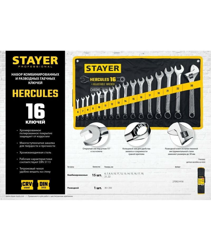Набор комбинированных и разводных гаечных ключей STAYER HERCULES 6 - 30 мм 16 шт [27092-H16]