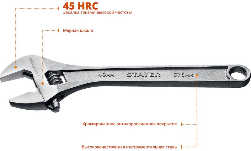 Ключ разводной STAYER MAX-Force 375 / 43 мм [2725-37]
