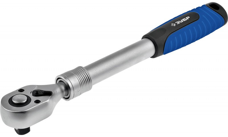Трещотка для торцовых головок Зубр ЭКСПЕРТ 1/2" телескопическая, Cr-V, 72 зубца, хроматированное покрытие, быстрый сброс [27732-1/2]