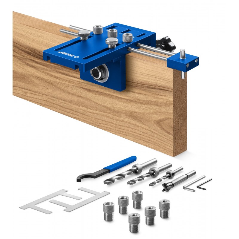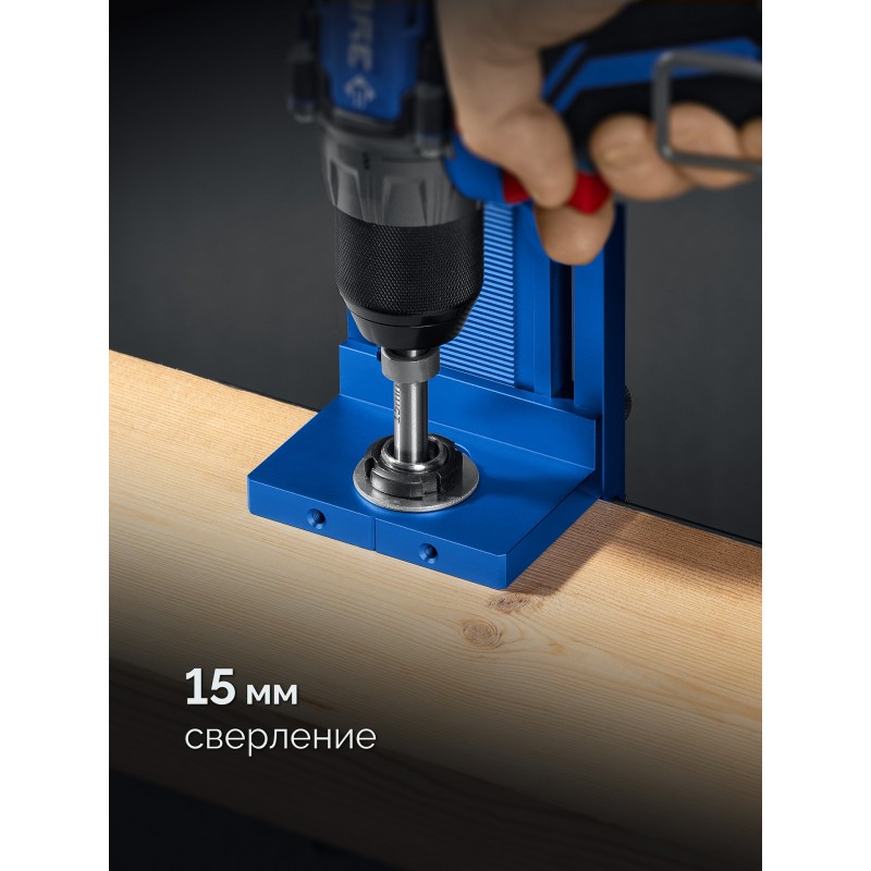 Мультифункциональный кондуктор позиционирует сверло, обеспечивая точность сверления отверстий под шканты и эксцентриковые стяжки. Использование кондукторов значительно ускоряет и облегчает процесс соединения деревянных деталей.