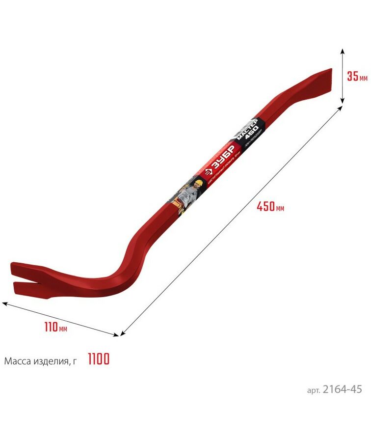 Лом-гвоздодер Зубр Hex-18 450 мм 18 мм, шестигранный усиленный [2164-45]
