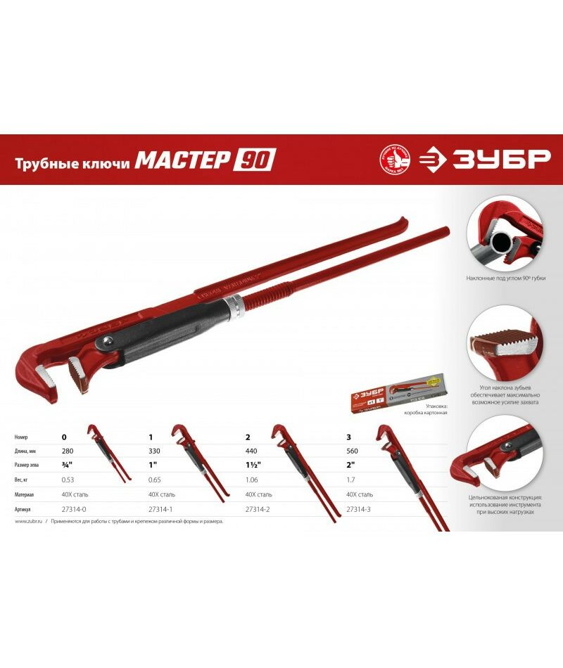 Трубный ключ с прямыми губками Зубр Мастер-90 №3 2" 560 мм [27314-3]