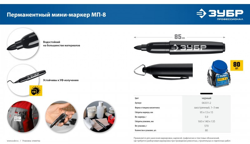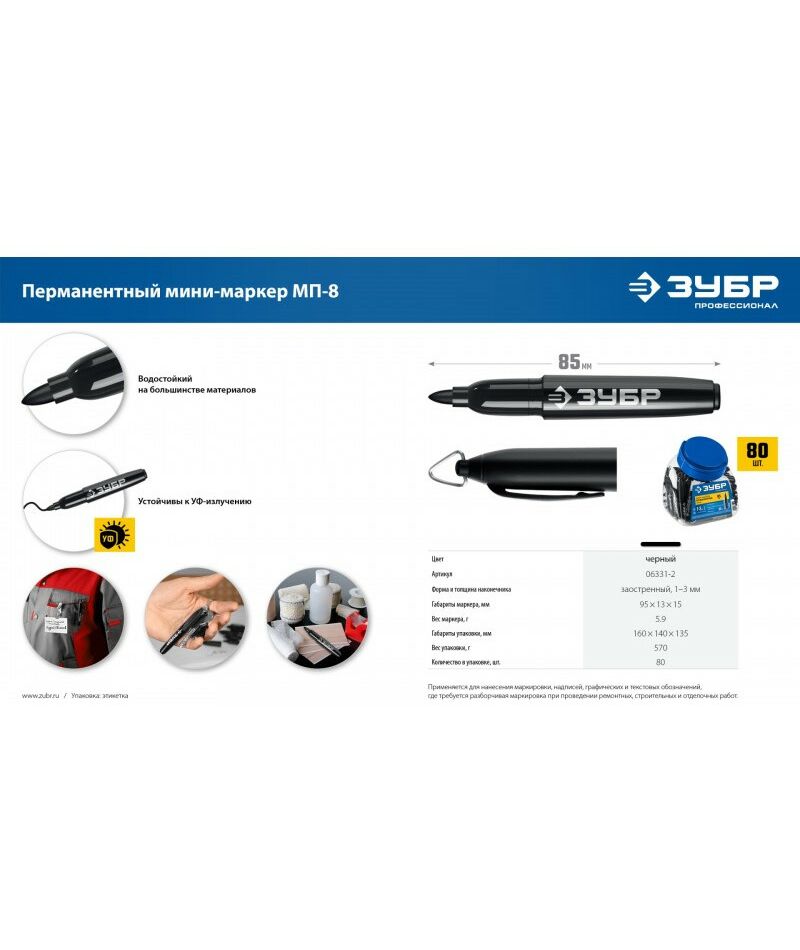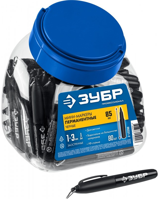 Перманентный маркер Зубр Мини черный, 1-3 мм, 80 шт [06331-2]