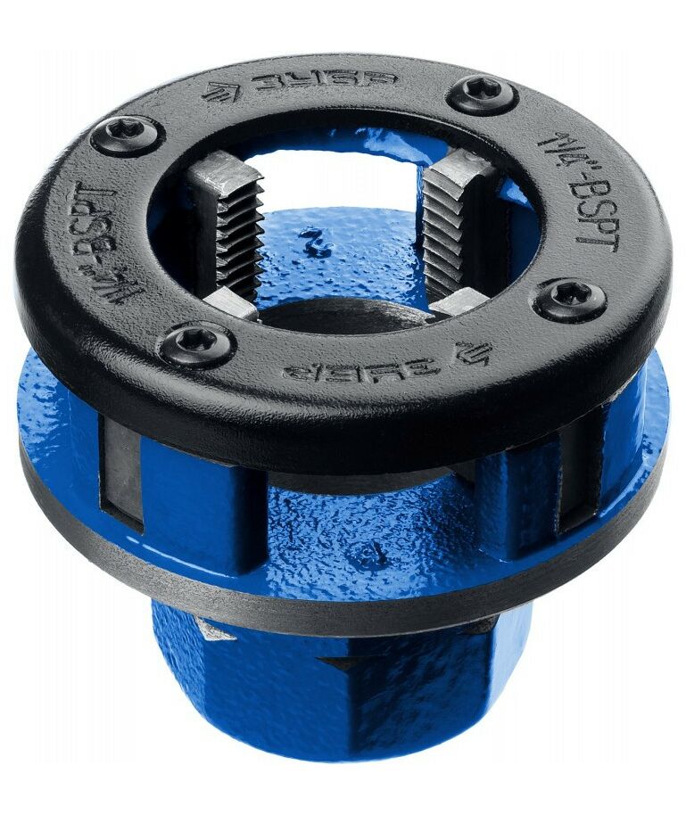 Для нарезания правой трубной конической резьбы (стандарт BSPT) на металлических трубах стандартного диаметра