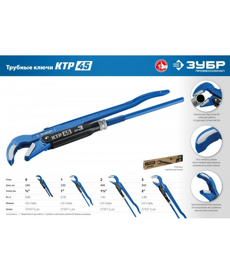 трубный ключ Зубр Профессионал КТР-45 №2, 1.5" 440 мм [27337-2]