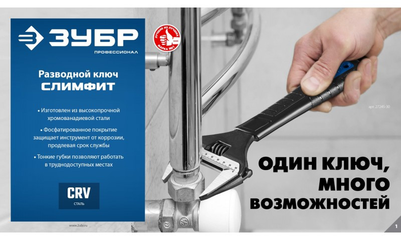 Разводной ключ Зубр Профессионал СлимФит 250/50 мм [27245-25]