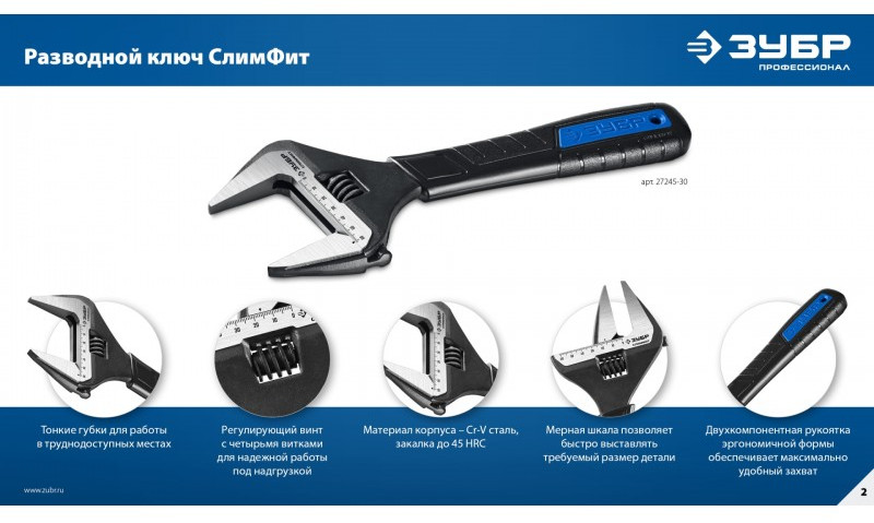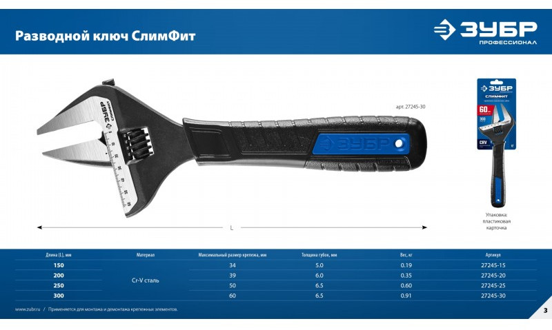 Разводной ключ Зубр СлимФит Профессионал 300/60 мм [27245-30]