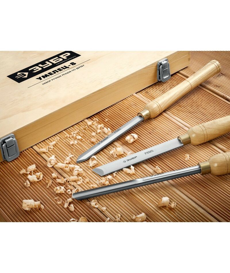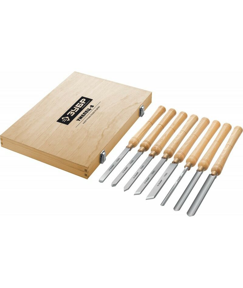 Набор ручных резцов по дереву Зубр УМЕЛЕЦ-8 8шт, Р6М5 [18374]