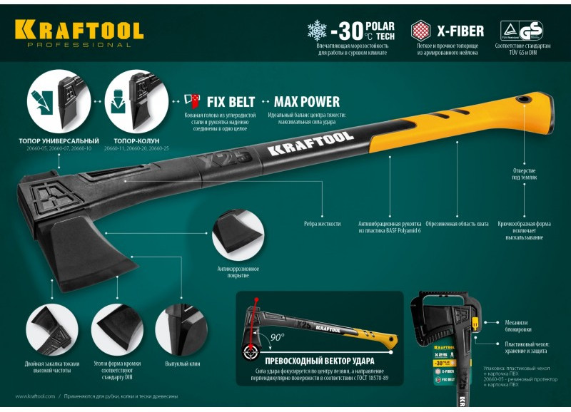 - Топор финского типа с рукояткой из армированного нейлона X-Fiber с технологией фиксации головы FixBelt и морозоустойчивой технологией PolarTech - профессиональный инструмент для рубки, колки и тески древесины при агрессивных погодных условиях, морозоустойчивость до -30С