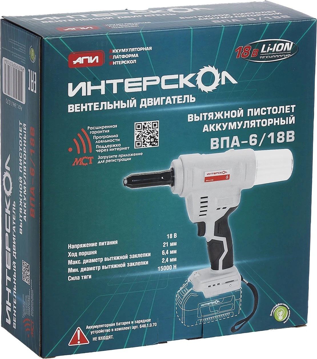 Заклепочник Интерскол ВПА-6/18В без АКБ и ЗУ [646.1.0.70]
