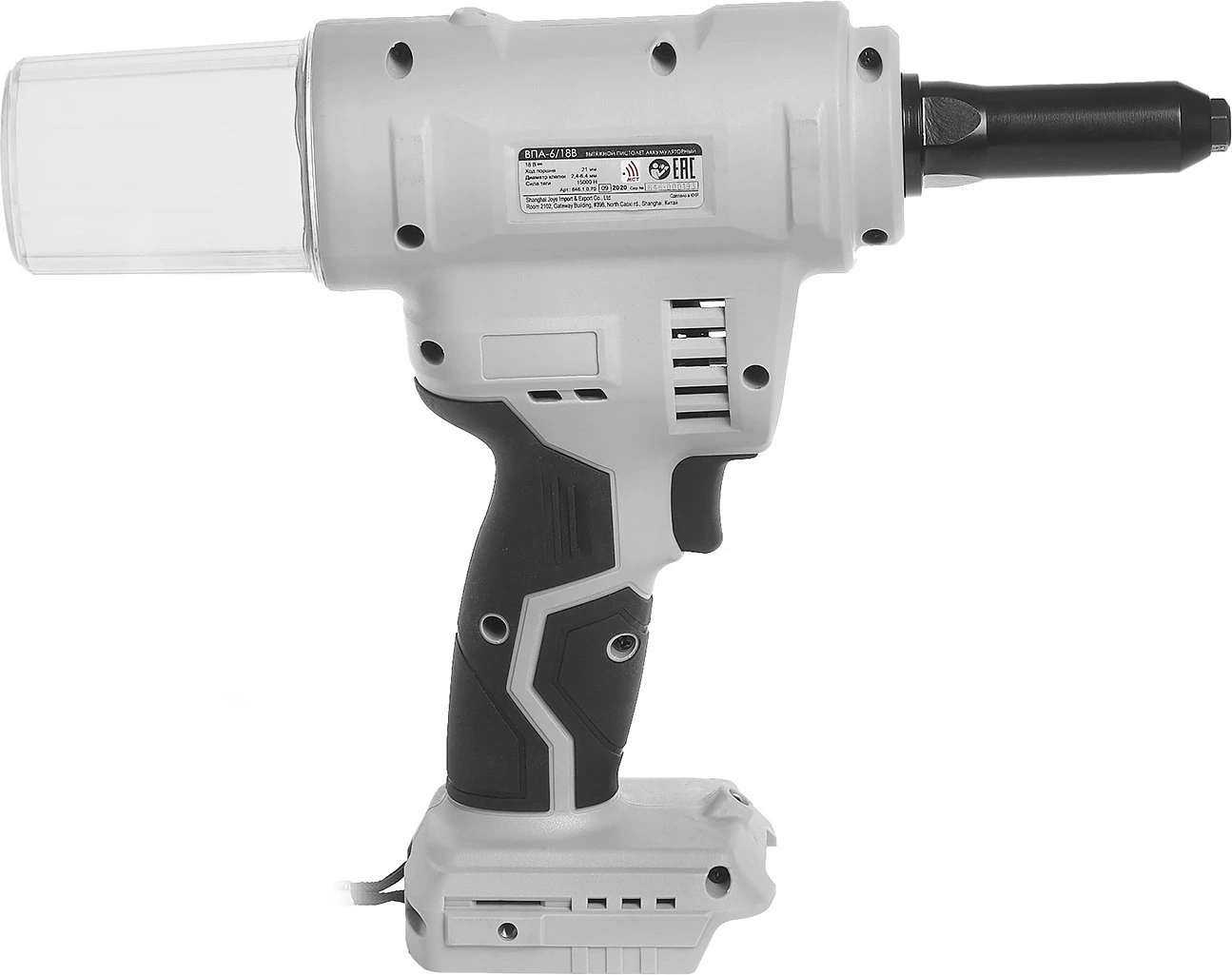 Аккумуляторный заклепочный пистолет с бесщеточным (вентильным) двигателем. Применяется для установки вытяжных заклепок размером от 2,4 до 6.4 мм. сталь/алюминий/нержавеющая сталь/медь.