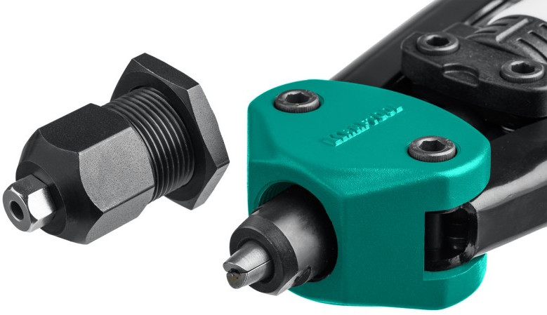 - Компактный размер, контейнер для отработанных заклепок и двухкомпонентные рукоятки повышают удобство использования
