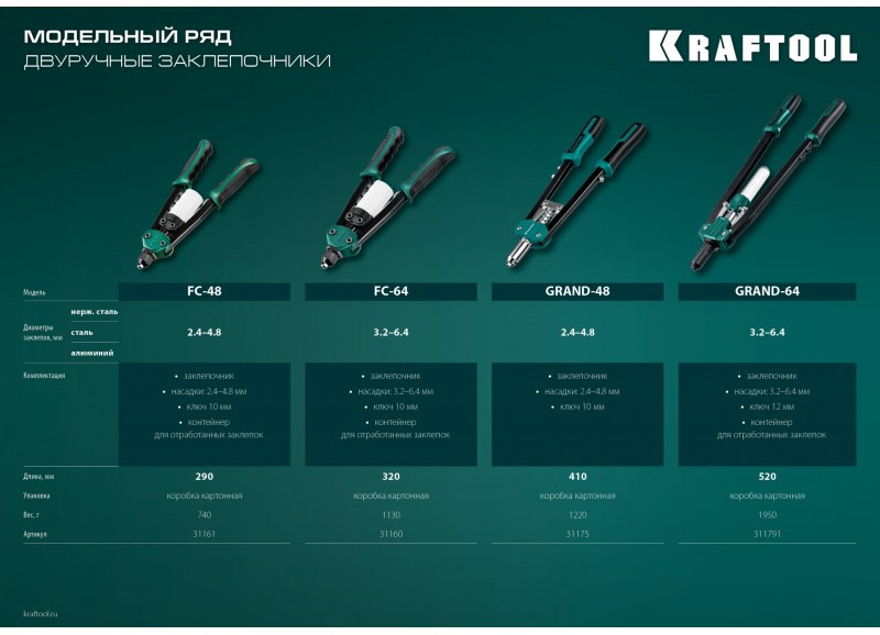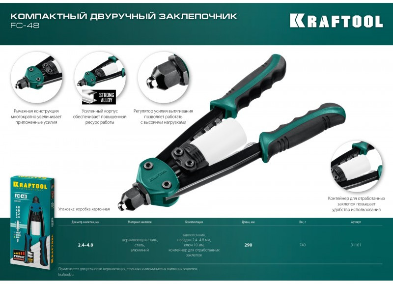 Компактный двуручный заклепочник KRAFTOOL FC-48 2.4 - 4.8 мм, 290 мм [31161_z01]