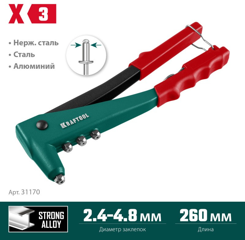 Литой заклепочник KRAFTOOL X-3 2.4-4.8 мм [31170]
