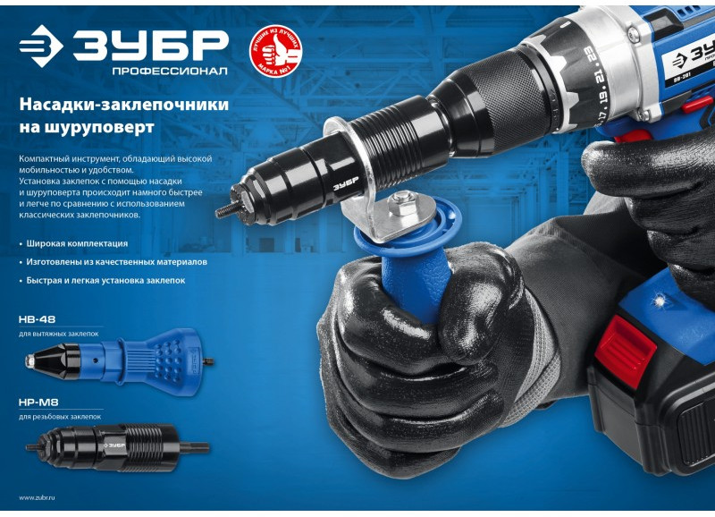 Насадка-заклепочник ЗУБР - это надежный и компактный инструмент для формирования соединений с помощью заклепок.