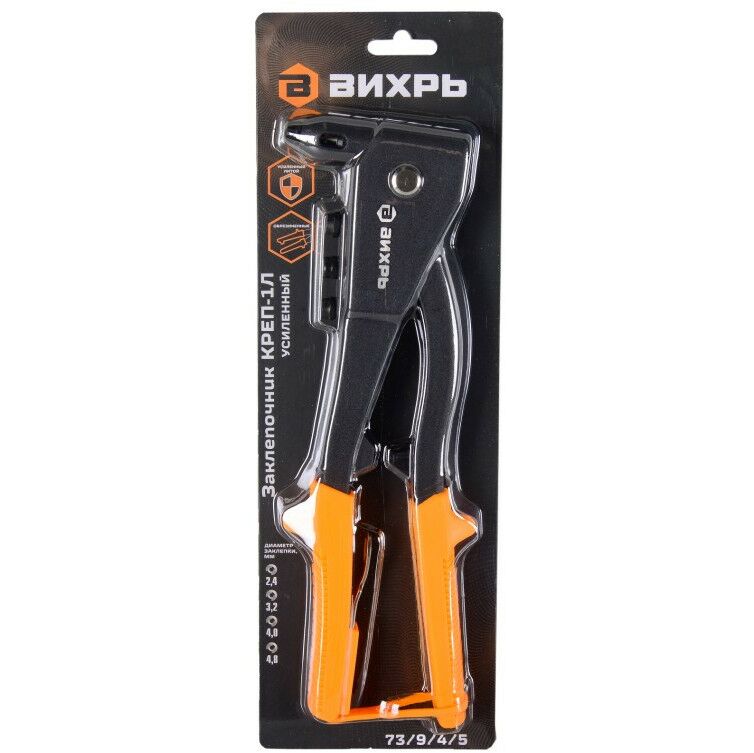 Заклепочник Вихрь КРЕП-1Л усиленный, 2.4-4.8 (типы заклепок: сталь/алюминий/нержавеющая сталь, размеры заклепок: 2.4, 3.2, 4.0, 4.8