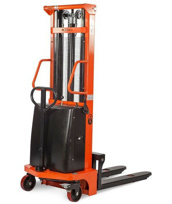 - Электрический привод подъема и спуска вил сокращает время обработки грузов за счет высокой скорости работы, в отличие от ручных штабелеров, так же это значительно снижает нагрузку на оператора