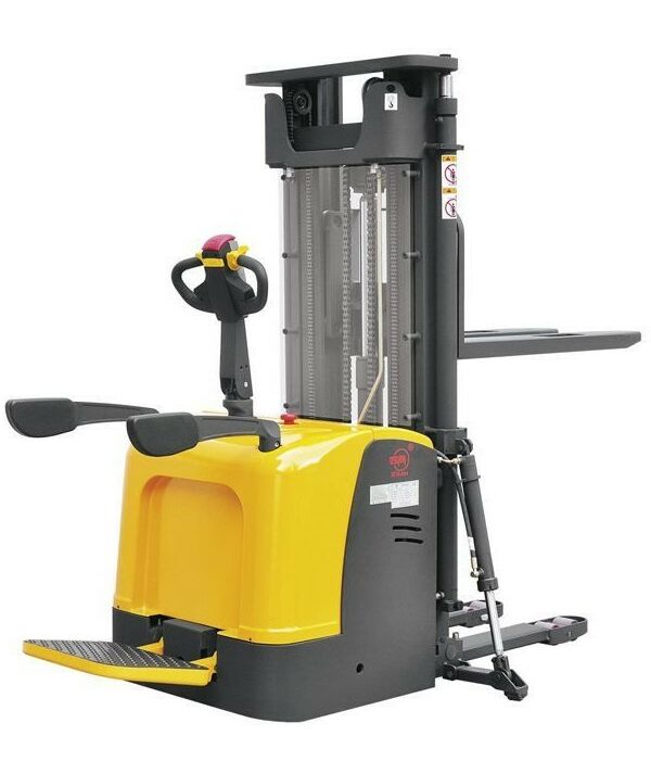 Оснащён электромагнитным тормозом. Для обеспечения устойчивости штабелера при подъеме груза на большую высоту данная модель оснащена специальными дополнительными выдвижными упорами, которые могут быть убраны при транспортировке груза в нижнем положении вил. В качестве основных преимуществ оборудования можно выделить: