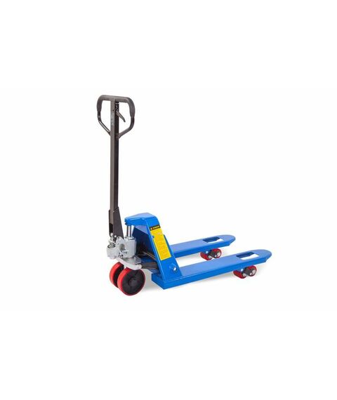 Гидравлические тележки TOR RHP– это серия очень надежных тележек. Серия специально предназначена для интенсивной работы на предельных нагрузках. Серия состоит из нескольких видов тележек: стандартная под евро паллеты, низкопрофильная, узковильная, длинновильная, коротковильная, увеличенной грузоподъемности, с разными типами колес. Хотите купить качественную рохлю и просто работать, не думая о ремонте – серия RHP для вас. При соблюдении правил эксплуатации тележка RHP прослужит очень долго. Гарантия на них 1 год + 1 год бесплатного сервисного обслуживания. Данная модификация тележки RHP выполняется с укороченными вилами. Длина вил составляет 800 мм для работы с небольшими паллетами либо работа по короткой стороне. Грузоподъемностью 2,5 тонны – для обработки грузов на стандартных евро паллетах. Износостойкие полиуретановые колеса увеличивают срок эксплуатации тележки до замены колес.Подробные технические характеристики тележки можно посмотреть ниже в разделе технические характеристики. При выборе гидравлической тележки обращайте внимание на ее основные эксплуатационные характеристики, которые важны для вас. Если нужна консультация специалиста, воспользуйтесь удобным для вас способом связи для получения исчерпывающей информации по выбору тележки.