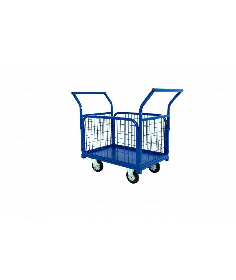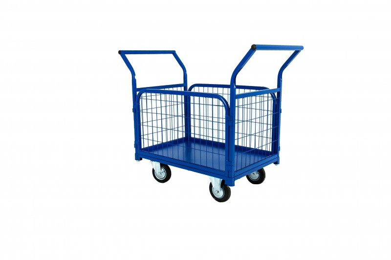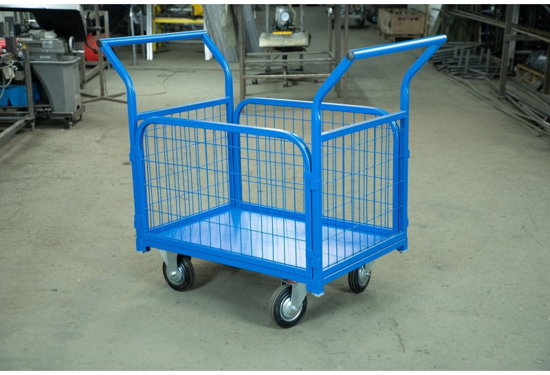 Тележка платформенная TOR ТП-2С 600х900мм, с бортами из сетки и двумя ручками, колеса 160 мм [1012414]
