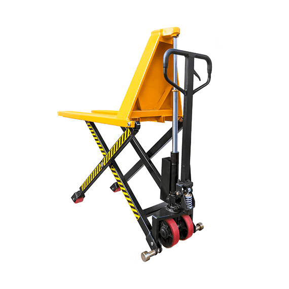 Гидравлическая тележка модели JF оснащена системой гидравлического подъема ножничного типа. Подъем осуществляется с помощью ручки тележки. Благодаря телескопическому штоку груз можно поднять на высоту 715 мм. Это позволяет значительно облегчить работу с грузом, для распаллечивание и запаллечивание груза. Грузоподъемность тележки составляет 1 тонна.