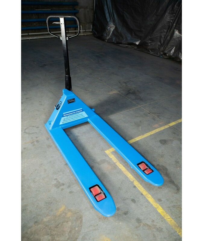 Ширина вил у данной тележки достигает 685 мм при грузоподъемности 2,5 тонны.