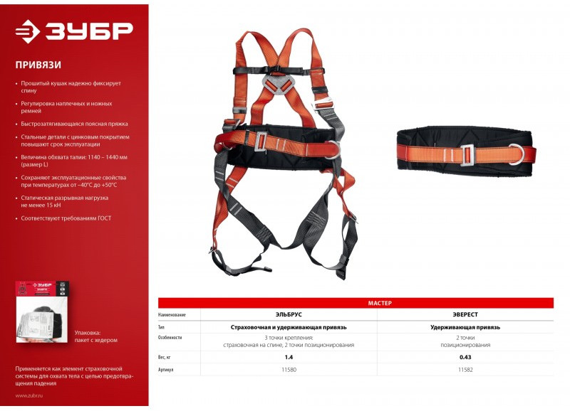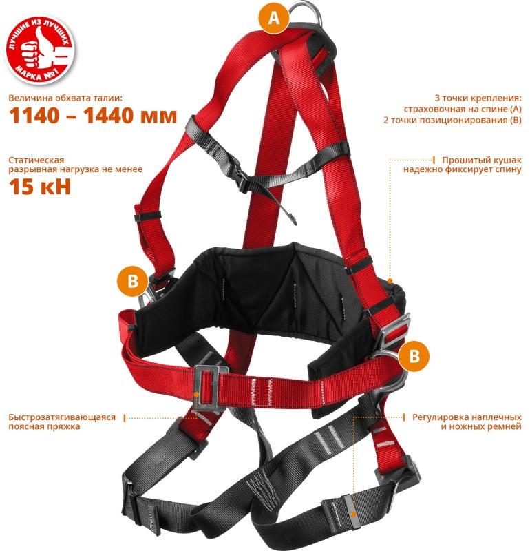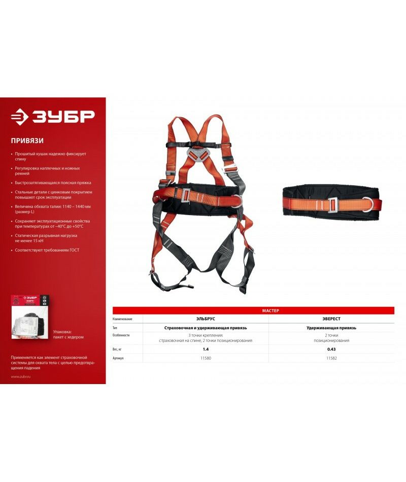 Страховочная привязь «ЗУБР» – надежное средство защиты от падения с высоты.