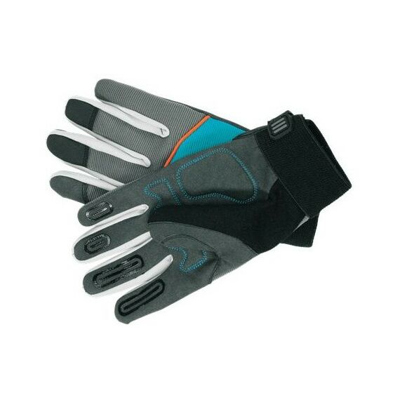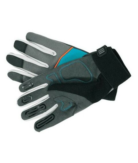Эти специальные перчатки GARDENA обеспечат надежный захват инструмента и удержание в руке. Инновационное покрытие области пальцев гарантирует отсутствие скольжения инструмента в руках во время работы. Амортизирующие вставки в области ладони создают приятный комфорт - в особенности, когда необходимо уменьшить воздействие, создаваемое механическим садовым инструментом или техникой с двигателем. Специально разработанный покрой области пальца оптимизирует посадку на руке, обеспечивает безопасное удерживание инструмента и увеличивает срок службы перчаток. Особенно, если вы работаете с топором, ножницами для обрезки живой изгороди или сучкорезом. В целом перчатки изготовлены из специального, дышащего тканевого материала, который предотвращает запотевание рук. Если же вы начинаете потеть во время работы, то всегда сможете комфортно вытереть пот с лица благодаря наличию на большом пальце вставки из мягкого материала (специально для этих целей). Прочная манжета на запястье регулируется и защищает от грязи и травм.