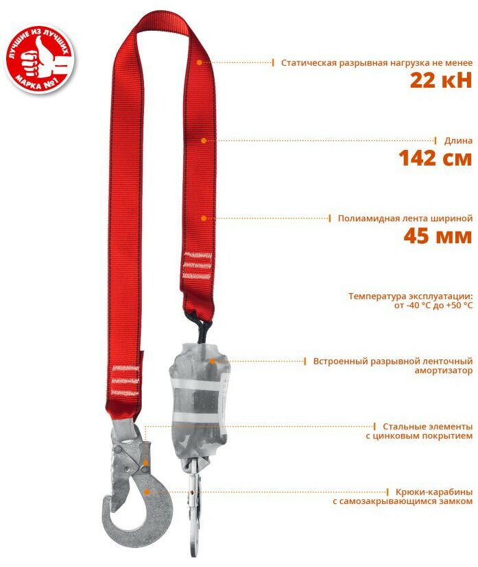 Строп страховочный одноплечный Зубр СЛА-1 капроновая лента, с амортизатором [11586]