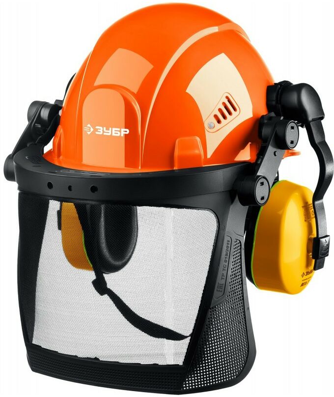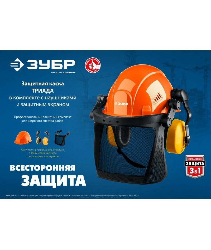 Защитная каска в комплекте с наушниками и защитным экраном Зубр ТРИАДА наушники SNR=27дБ, сетчатый экран 190х339мм [11099]