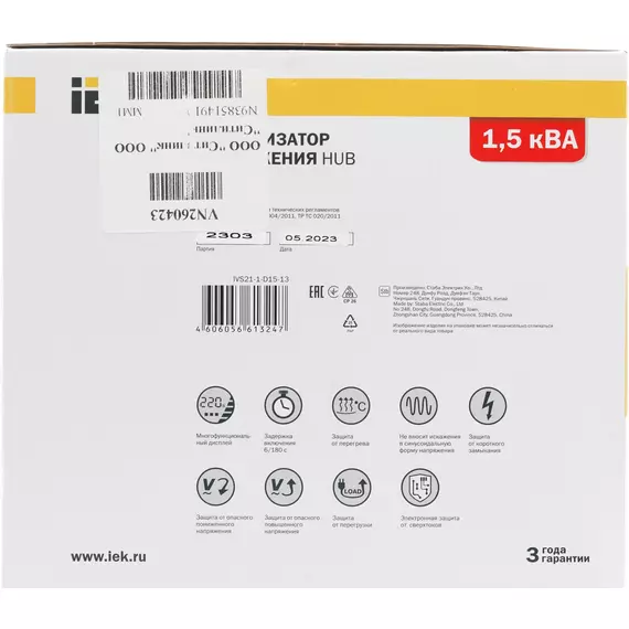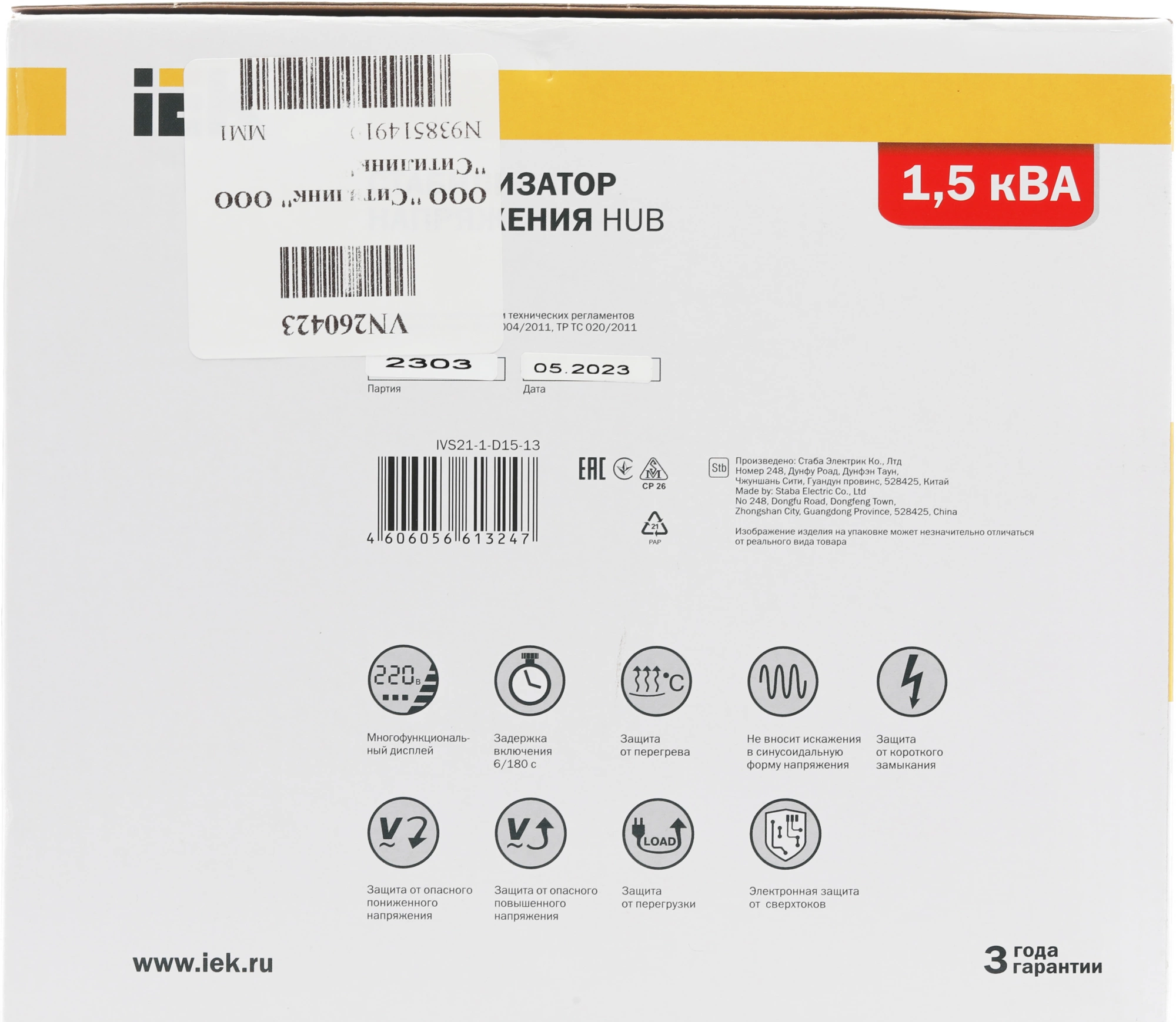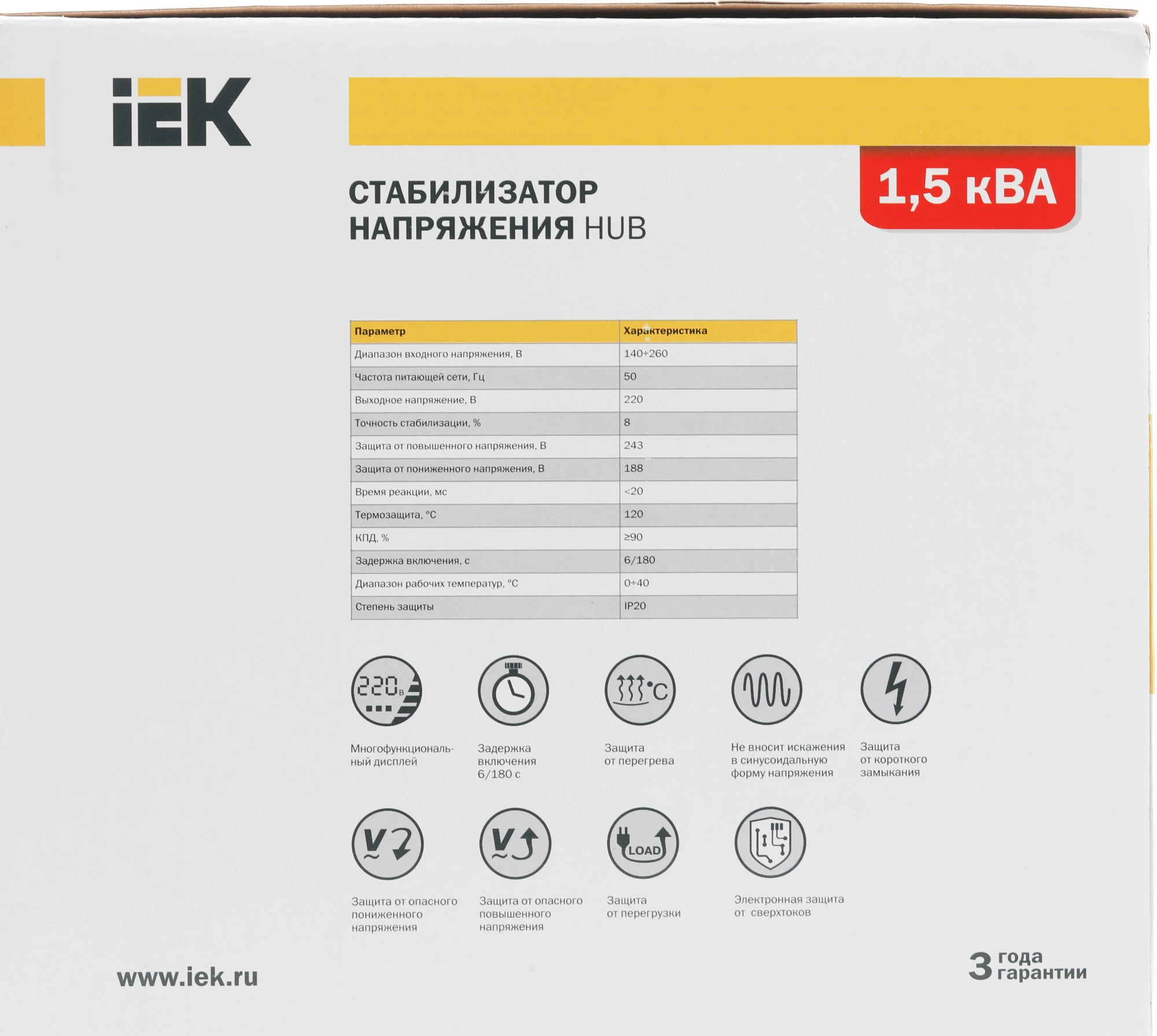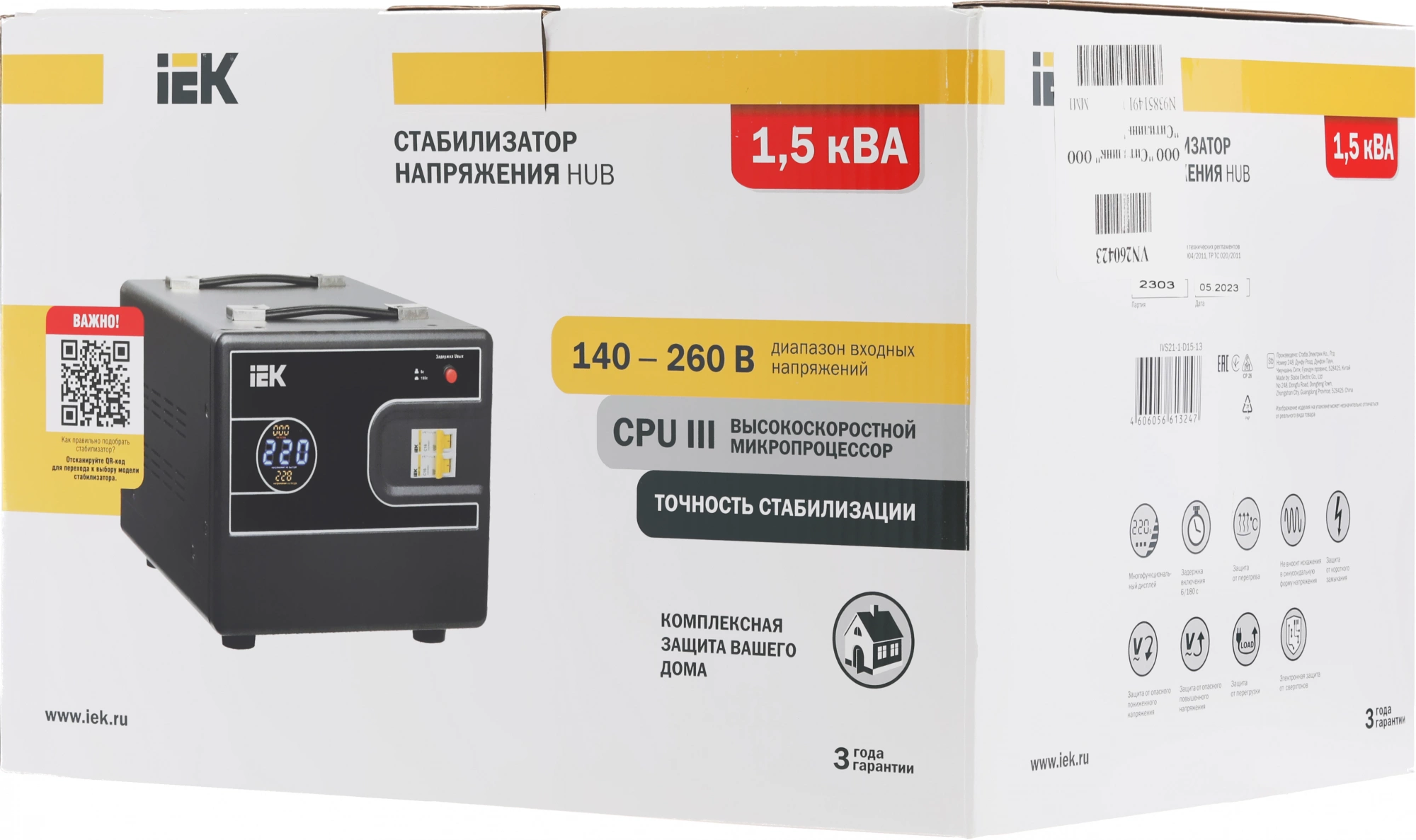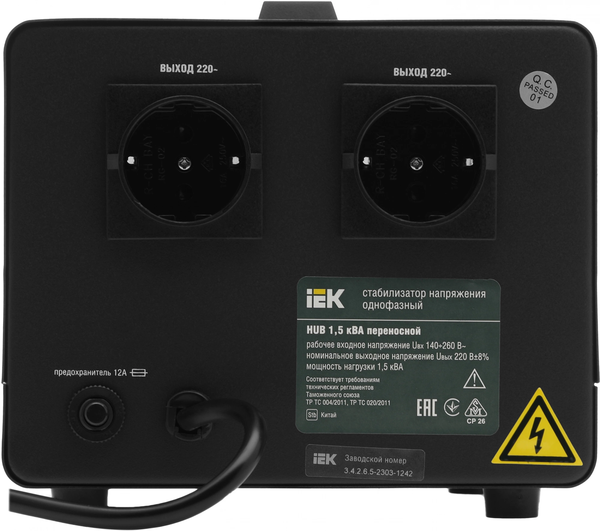Стабилизатор напряжения IEK IVS21-1-D15-13 Hub 1.5кВА однофазный черный
