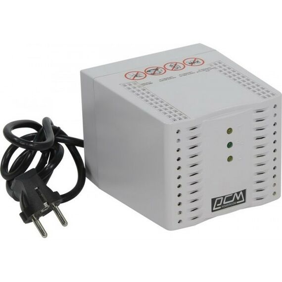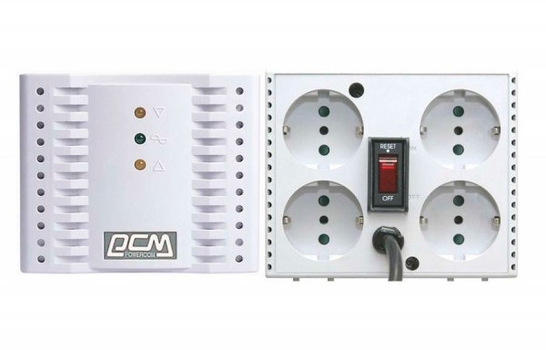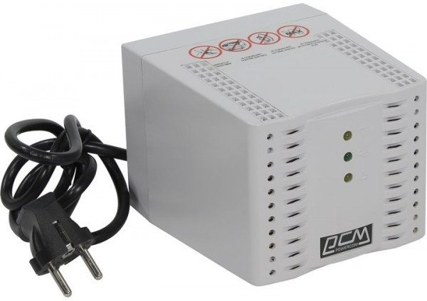 Стабилизатор PowerCom TCA-3000 вх.187~253 В, вых. 220V±5%, 4 розетки Euro, белый