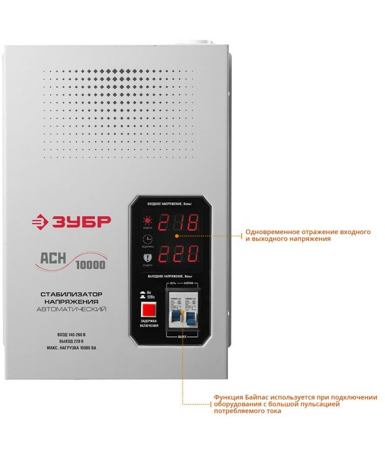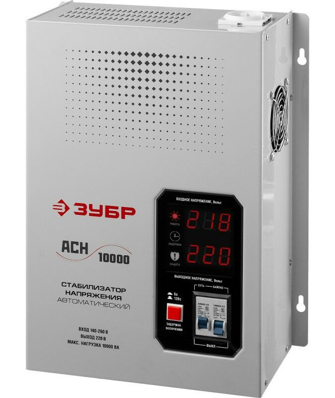 Профессиональный стабилизатор напряжения навесной Зубр АСН 10000 10000 ВА, 140-260 В, 8% [59387-10]