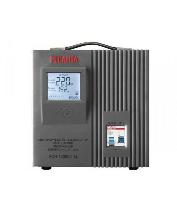 Однофазный электронный стабилизатор Ресанта АСН-10000/1-Ц оснащен микропроцессорным управлением, цифровым индикатором напряжения. На дисплее отображается входное/выходное напряжение.