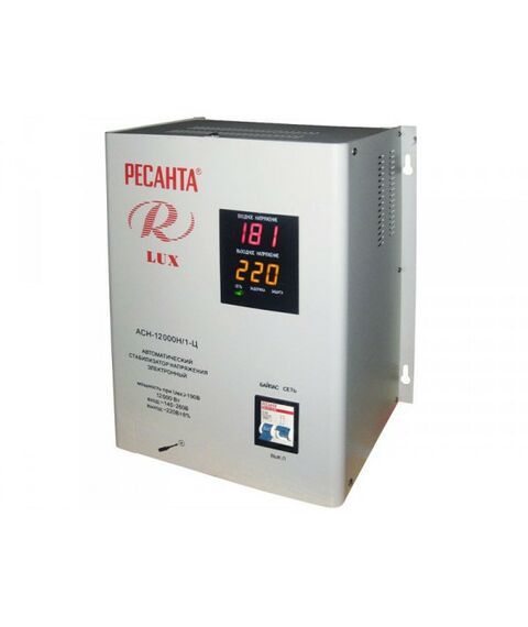 Однофазный цифровой стабилизатор Ресанта АСН-12000Н/1-Ц - это бытовой прибор, к которому можно подключить потребитель мощностью до 12000 Вт. Прибор обеспечивает сохранность потребителя в случае скачков напряжения в сети электроснабжения или при коротком замыкании. Стабилизатор АСН-12000Н/1-Ц стоит купить, ведь его можно разместить в любом удобном месте, например на компьютерном столе или на кухне, для подключения бытовой техники.