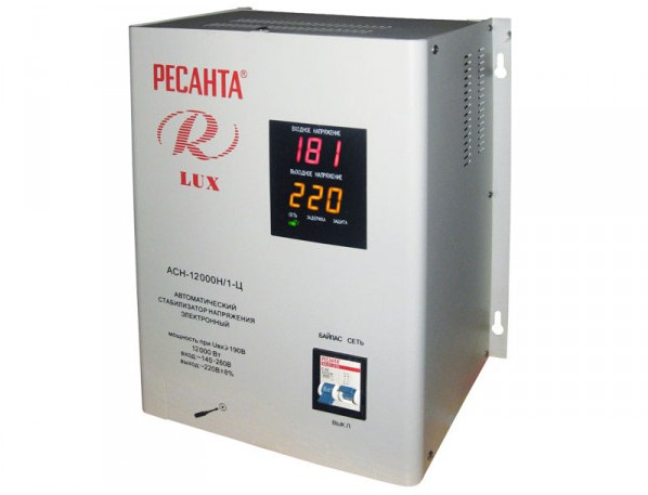 Однофазный цифровой стабилизатор Ресанта АСН-12000Н/1-Ц - это бытовой прибор, к которому можно подключить потребитель мощностью до 12000 Вт. Прибор обеспечивает сохранность потребителя в случае скачков напряжения в сети электроснабжения или при коротком замыкании. Стабилизатор АСН-12000Н/1-Ц стоит купить, ведь его можно разместить в любом удобном месте, например на компьютерном столе или на кухне, для подключения бытовой техники.